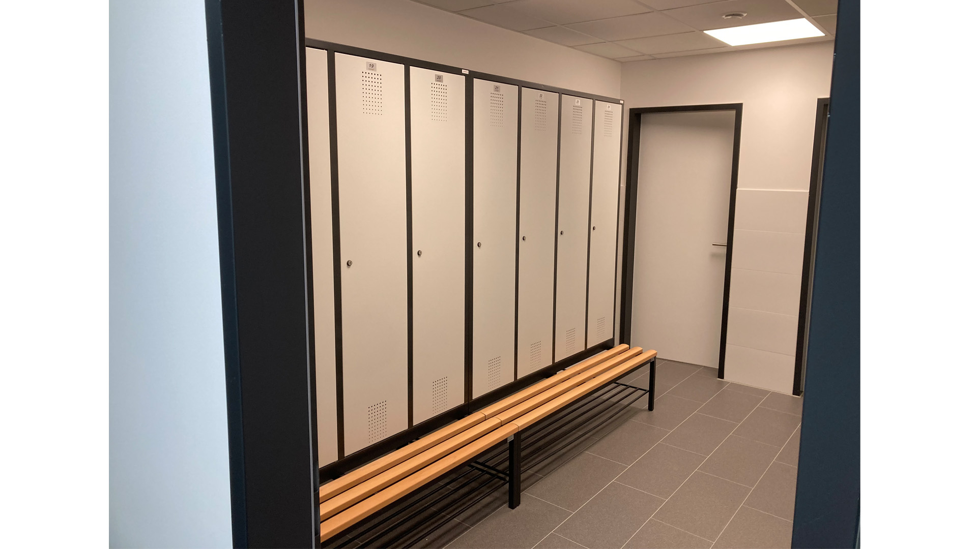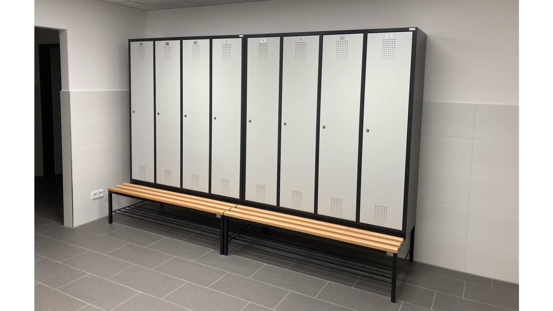 Nach einer ausführlichen Beratung durch unser Planungsteam, entschied sich der Kunde für die Schränke der Evolo Serie auf einem Sitzbankuntergestell.
