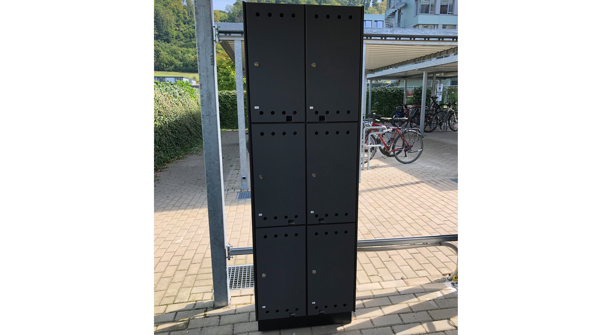 Wir durften unseren Kunden Carl Zeiss Energie GmbH mit unseren E-Bike Ladeschränken ausstatten. Auf Kundenwunsch haben wir als Besonderheit noch eine Aussparrung für Ladekabel der E-Bikes, je Tür einrichten lassen. So ist es nun auch problemlos möglich, die E-Bikes an denen die Akkus nicht herausgenommen werden können auch zu laden und den rest wie zum Beispiel Helm, Trinkflasche, etc. sicher zu verstauen.